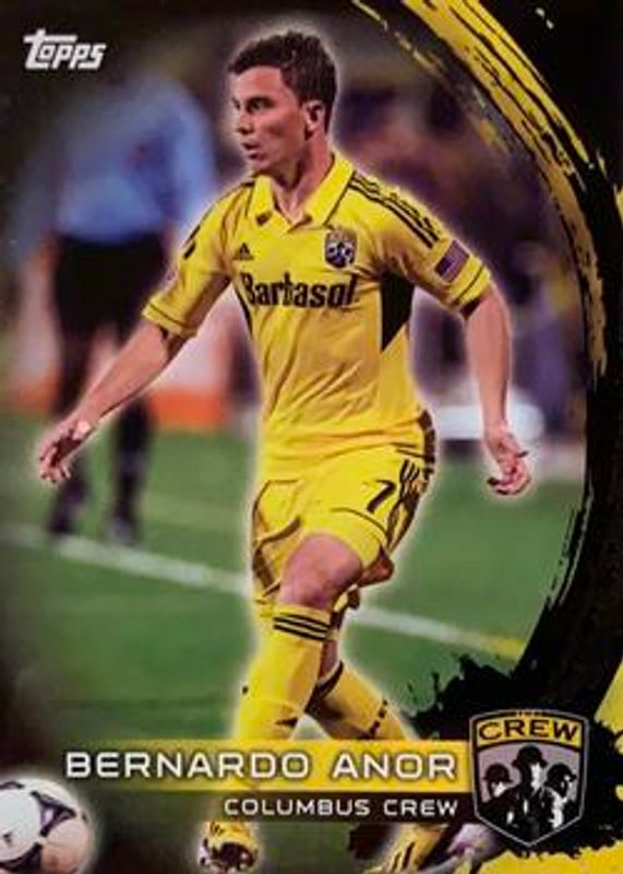 The Bernardo Anor 2014 Topps MLS #168 Black /10 Rookie card is 1 of 11 Bernardo Anor's card variations in the 2014 Topps MLS set being tracked by Sports Card Investor, including Base, Purple /99, Blue /50, Gold /25, and Brazilian /5.