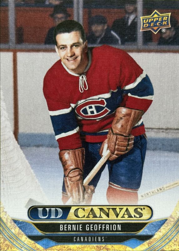 The Bernie "Boom Boom" Geoffrion 2024 Upper Deck Extended Series #C382 UD Canvas card is 1 of 6 Bernie "Boom Boom" Geoffrion's card variations in the 2024 Upper Deck Extended Series set being tracked by Sports Card Investor, including UD Canvas - Black & White, UD Canvas - Black Printing Plate /1, UD Canvas - Cyan Printing Plate /1, UD Canvas - Magenta Printing Plate /1, and UD Canvas - Yellow Printing Plate /1.