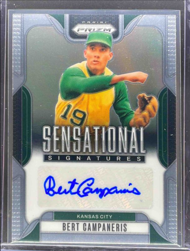 The Bert Campaneris 2025 Prizm #SS-BC Sensational Signatures card is 1 of 48 Bert Campaneris' card variations in the 2025 Prizm set being tracked by Sports Card Investor, including Base, Blue Ice, Glitter, Green, and Green Ice.