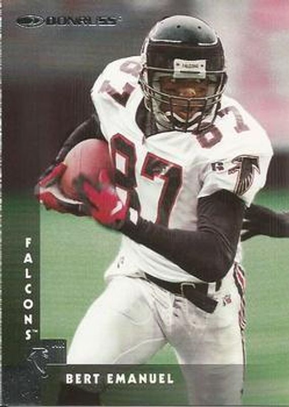 The Bert Emanuel 1997 Donruss #60 Base card is 1 of 3 Bert Emanuel's card variations in the 1997 Donruss set being tracked by Sports Card Investor, including Press Proof Gold Die-Cut, and Press Proof Silver.