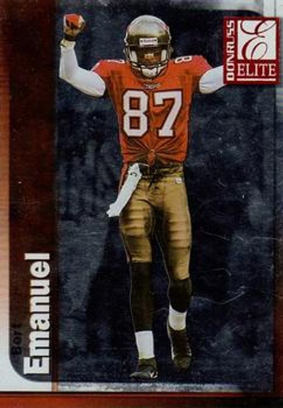 The Bert Emanuel 1999 Donruss Elite #063 Base card is 1 of 3 Bert Emanuel's card variations in the 1999 Donruss Elite set being tracked by Sports Card Investor, including Aspirations /72, and Status /28.