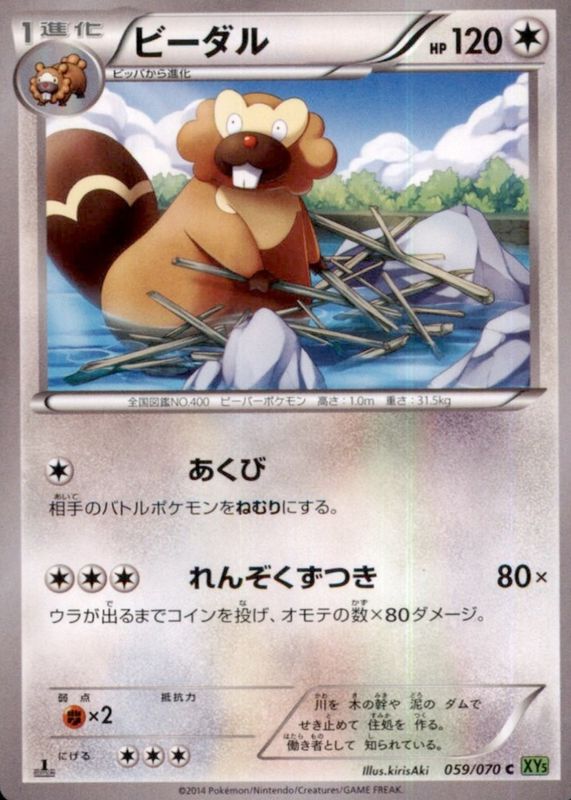 The Bibarel 2014 Japanese XY: Tidal Storm #059/070 1st Edition card in Raw TCG (Near Mint) condition has not changed in price in the last 30 days and was last sold for $2.99 .