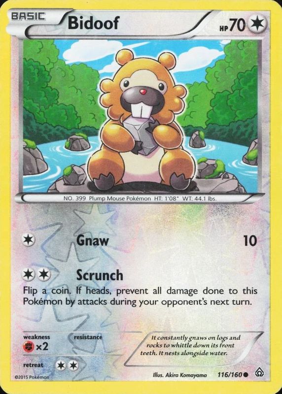 The Bidoof 2015 XY: Primal Clash #116/160 Base card in Raw TCG (Near Mint) condition has moved up $0.01 (+1.0%) in the last 30 days and was last sold for $1.00 .