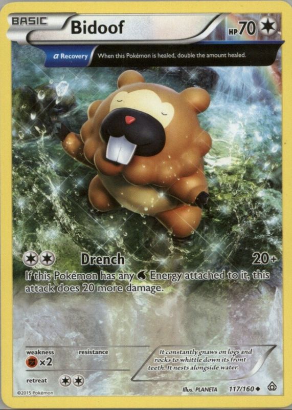 The Bidoof 2015 XY: Primal Clash #117/160 Base card in Raw TCG (Near Mint) condition has not changed in price in the last 30 days and was last sold for $1.99 .