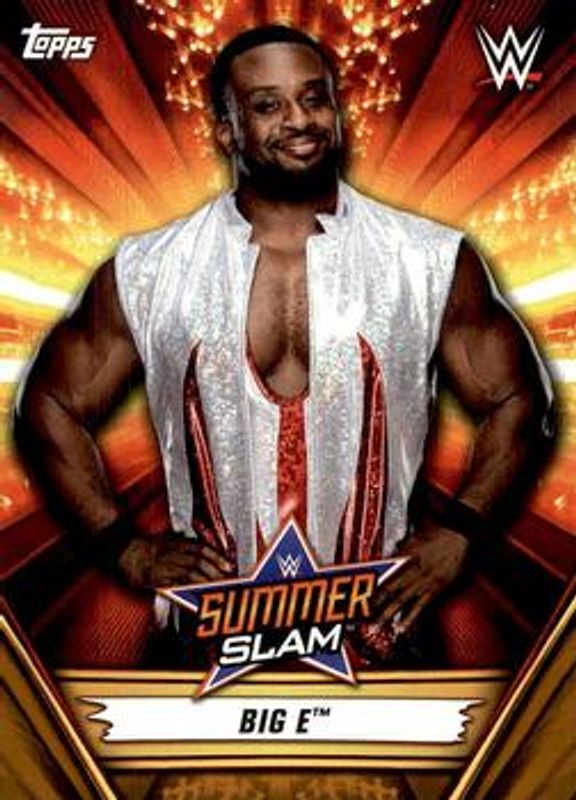 The Big E 2019 Topps WWE SummerSlam #31 Bronze card is 1 of 26 Big E's card variations in the 2019 Topps WWE SummerSlam set being tracked by Sports Card Investor, including Base, Blue /99, Silver /25, Gold /10, and Printing Plates Black /1.