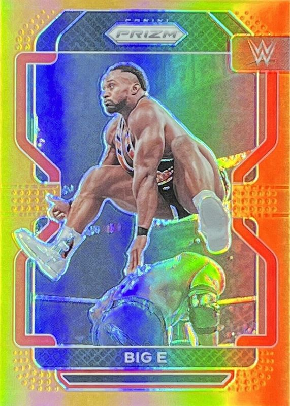 The Big E 2022 Prizm WWE #117 Orange /99 card in Raw condition has not changed in price in the last 30 days and was last sold for $1.58 .