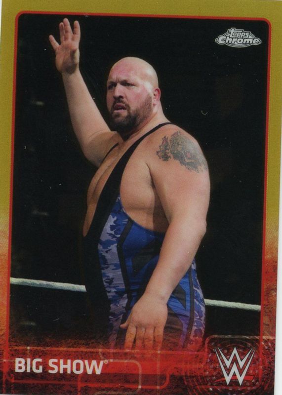 The Big Show 2015 Topps Chrome WWE #7 Gold Refractor /50 card in Raw condition has not changed in price in the last 30 days and was last sold for $14.99 .