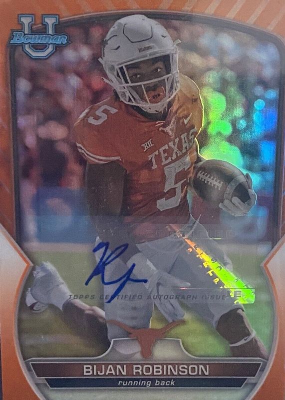 Bijan Robinson 2022 Bowman Chrome University #70 Prospect Auto - Orange Refractor /25 RAW Price Guide
