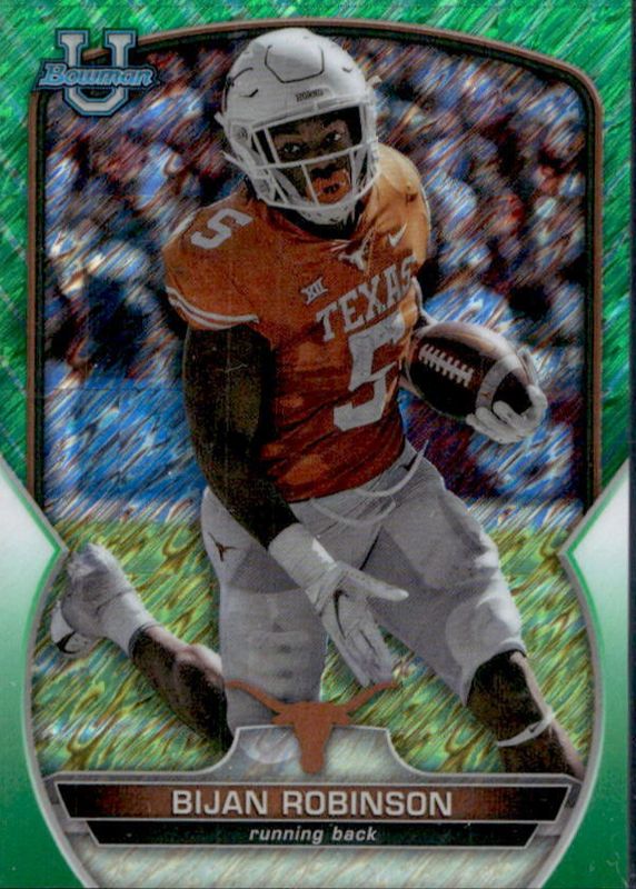 Bijan Robinson 2022 Bowman Chrome University #70 Prospects - Green Shimmer Refractor /99 RAW Price Guide