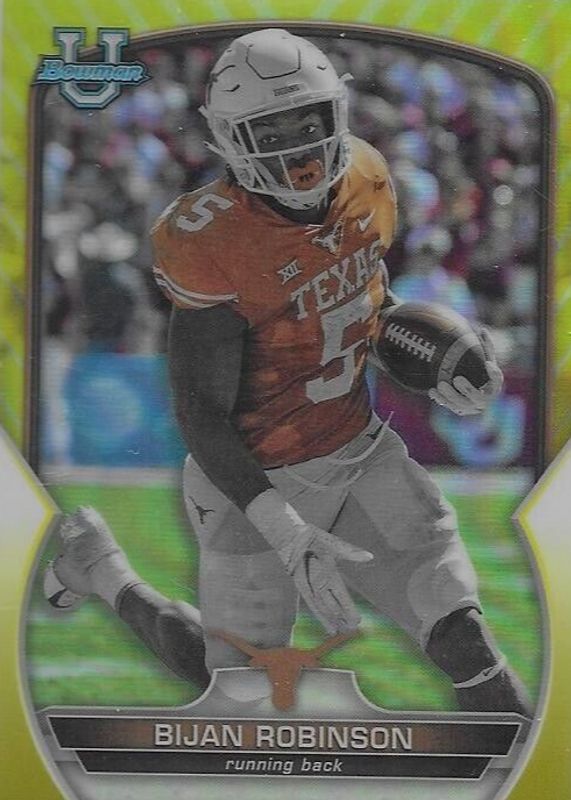 Bijan Robinson 2022 Bowman Chrome University #70 Prospects - Yellow Refractor /75 RAW Price Guide