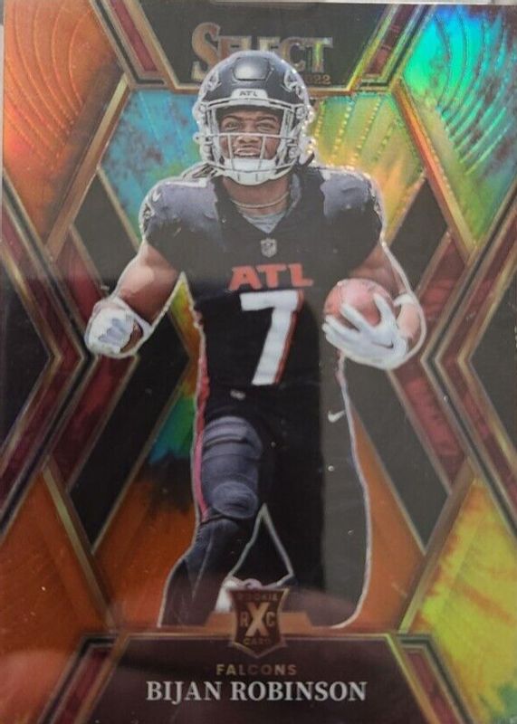 This card is 1 of 4 Bijan Robinson's card variations in the 2022 Select set being tracked by Sports Card Investor, including XRC Prizm, XRC Prizm - Gold /10, and XRC Prizm - Black /1.