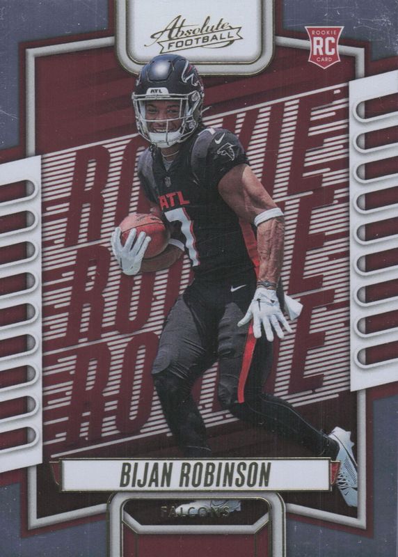 The Bijan Robinson 2023 Absolute #106 Yellow Rookie card in Raw condition has not changed in price in the last 30 days and was last sold for $3.00 .