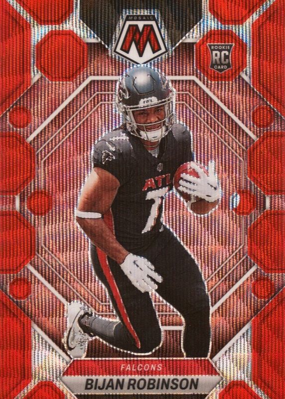 The Bijan Robinson 2023 Mosaic #284 Red Wave /9 Rookie card in Raw condition has not changed in price in the last 30 days.