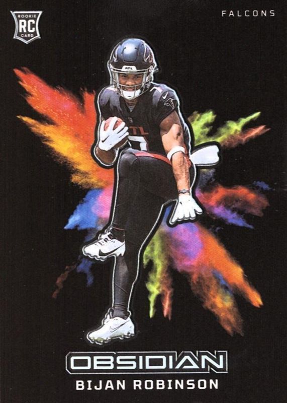 This card is 1 of 68 Bijan Robinson's card variations in the 2023 Obsidian set being tracked by Sports Card Investor, including Base, Asia, Electric Etch Red Flood /90, Electric Etch Purple /75, and Electric Etch Contra /(SSP).