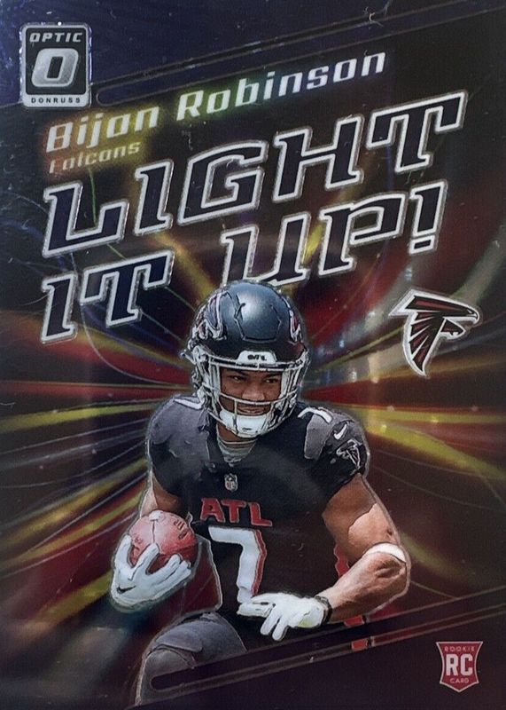 Bijan Robinson 2023 Optic #LU-BR Light It Up - Purple Stars /25 Rookie RAW Price Guide