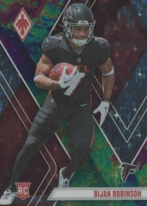 This card is 1 of 104 Bijan Robinson's card variations in the 2023 Phoenix set being tracked by Sports Card Investor, including Base, Color Burst, Silver, Silver Seismic, and Fire Burst /340.