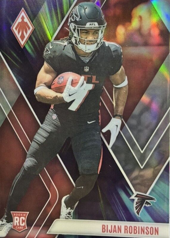This card is 1 of 104 Bijan Robinson's card variations in the 2023 Phoenix set being tracked by Sports Card Investor, including Base, Silver, Silver Seismic, Fire Burst /340, and Red /250.