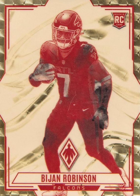 This card is 1 of 104 Bijan Robinson's card variations in the 2023 Phoenix set being tracked by Sports Card Investor, including Base, Color Burst, Silver, Silver Seismic, and Fire Burst /340.