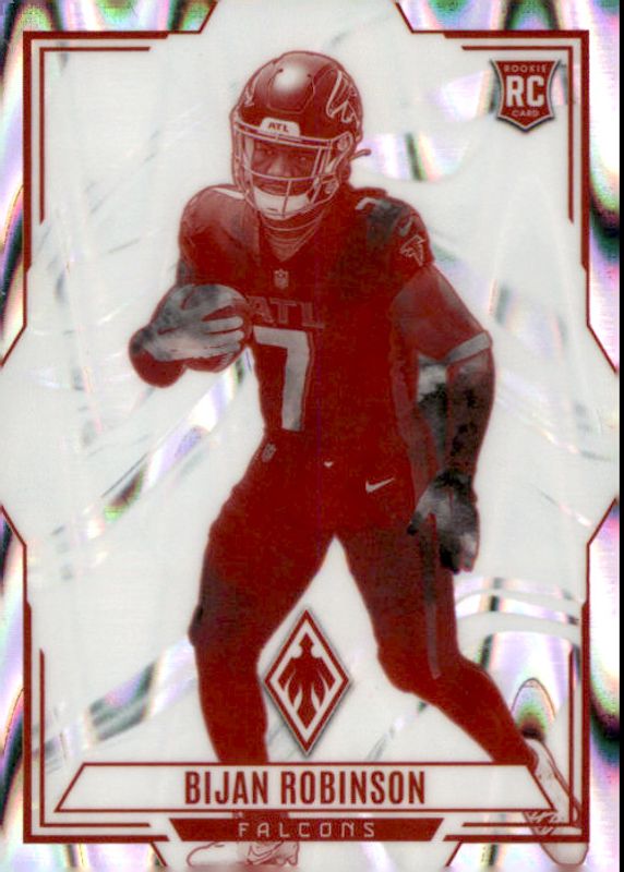 This card is 1 of 104 Bijan Robinson's card variations in the 2023 Phoenix set being tracked by Sports Card Investor, including Base, Color Burst, Silver, Silver Seismic, and Fire Burst /340.