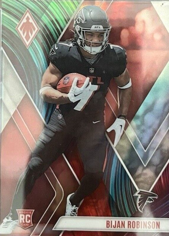 This card is 1 of 104 Bijan Robinson's card variations in the 2023 Phoenix set being tracked by Sports Card Investor, including Base, Color Burst, Silver, Silver Seismic, and Fire Burst /340.