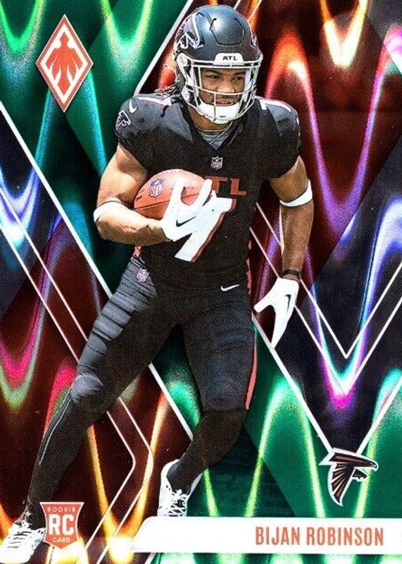 This card is 1 of 104 Bijan Robinson's card variations in the 2023 Phoenix set being tracked by Sports Card Investor, including Base, Color Burst, Silver, Silver Seismic, and Fire Burst /340.