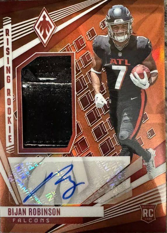 Bijan Robinson 2023 Panini Phoenix RC Rising Rookie Glove Auto Patch Orange /49