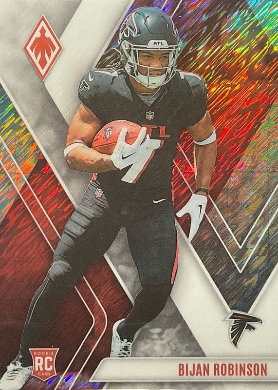 This card is 1 of 104 Bijan Robinson's card variations in the 2023 Phoenix set being tracked by Sports Card Investor, including Base, Color Burst, Silver, Silver Seismic, and Fire Burst /340.