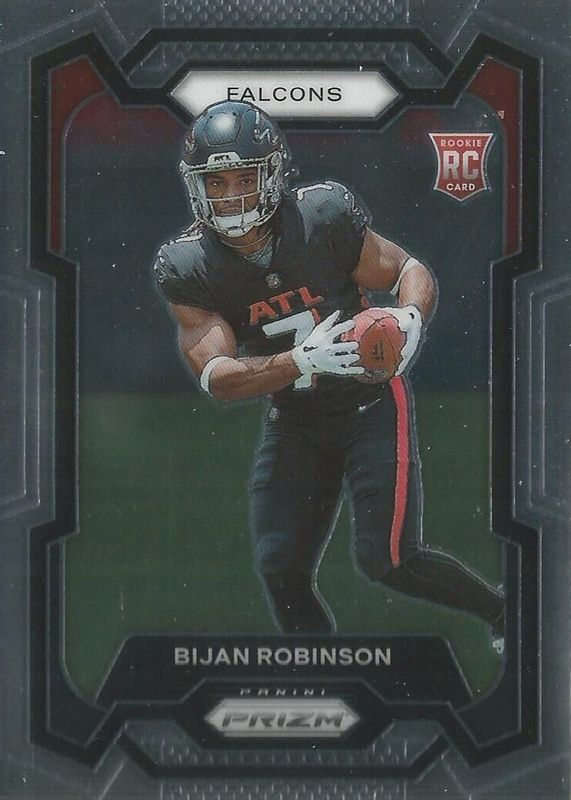 The Bijan Robinson 2023 Prizm #305 Base Rookie card in Raw condition has moved down -$0.19 (-13.0%) in the last 30 days and was last sold for $1.29 .