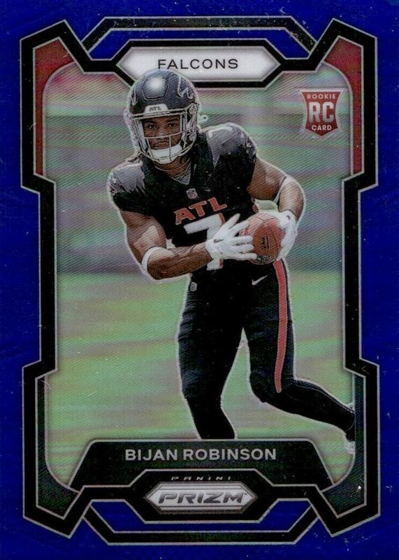 The Bijan Robinson 2023 Prizm #305 Blue /(SSP) Rookie card in Raw condition has not changed in price in the last 30 days and was last sold for $153.25 .