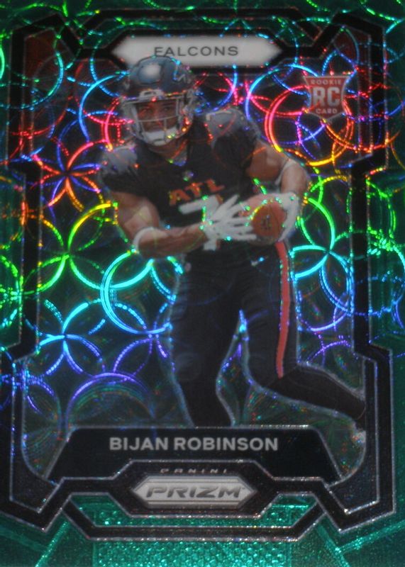 This card is 1 of 143 Bijan Robinson's card variations in the 2023 Prizm set being tracked by Sports Card Investor, including Base, Disco, Green, Green Ice, and Green Wave.