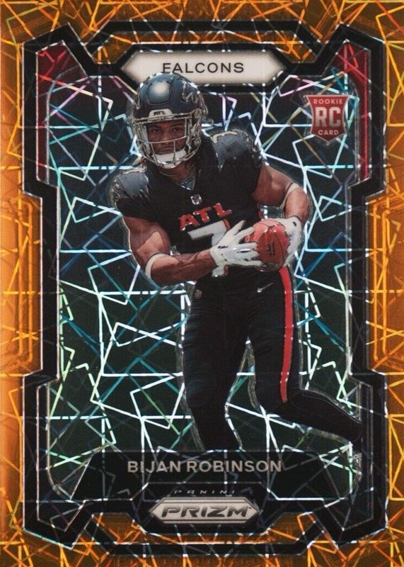 The Bijan Robinson 2023 Prizm #305 Lazer Rookie card in Raw condition has moved up $1.00 (+18.2%) in the last 30 days and was last sold for $6.50 .