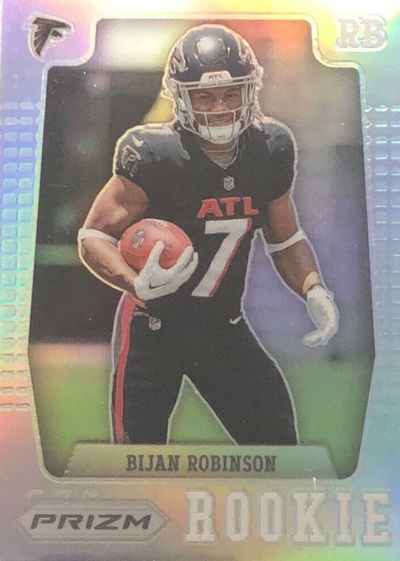 The Bijan Robinson 2023 Prizm #PFR-6 Prizm Flashback Rookies - Silver card in Raw condition has moved up $8.67 (+474%) in the last 30 days and was last sold for $10.50 .