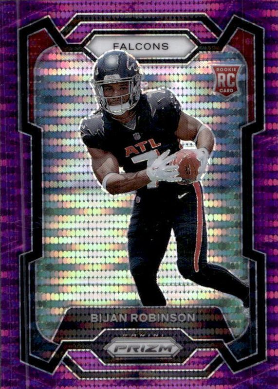 The Bijan Robinson 2023 Prizm #305 Purple Pulsar Rookie card in Raw condition has not changed in price in the last 30 days and was last sold for $19.00 .