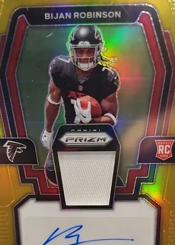 Best Prices Available For Sale of Bijan Robinson 2023 Prizm #RPA-BR Rookie Patch Auto - Gold /10