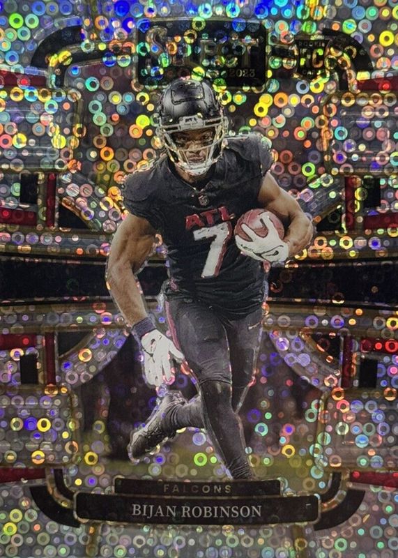 This card is 1 of 249 Bijan Robinson's card variations in the 2023 Select set being tracked by Sports Card Investor, including Club Level, Concourse, Field Level, Premier Level, and Suite Level.