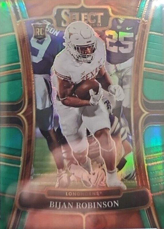 The Bijan Robinson 2023 Select Draft Picks #9 Concourse Green /5 Rookie card in Raw condition has not changed in price in the last 30 days and was last sold for $143.50 .