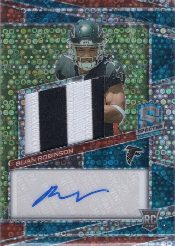 Auctions Ending Soon for Bijan Robinson 2023 Spectra #203 Rookie Patch Auto - Neon Blue /50 RAW