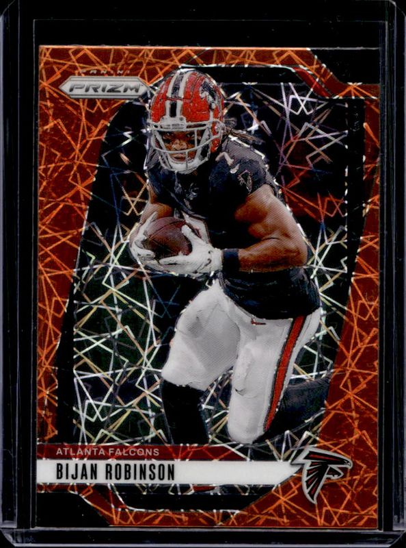 The Bijan Robinson 2024 Prizm #11 Lazer card is 1 of 84 Bijan Robinson's card variations in the 2024 Prizm set being tracked by Sports Card Investor, including Base, Choice Blue Yellow Green, Choice Silver, Disco, and Green.