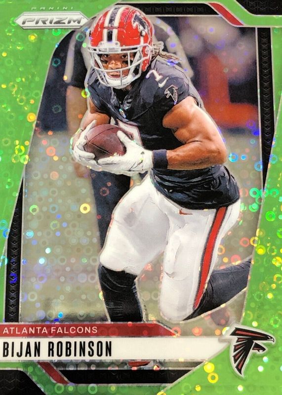 This card is 1 of 84 Bijan Robinson's card variations in the 2024 Prizm set being tracked by Sports Card Investor, including Base, Choice Blue Yellow Green, Choice Silver, Disco, and Green.