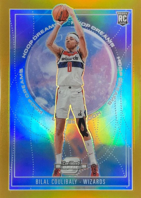 The Bilal Coulibaly 2023 Contenders Optic #21 Hoop Dreams - Gold /10 Rookie card in Raw condition has not changed in price in the last 30 days and was last sold for $127.75 .
