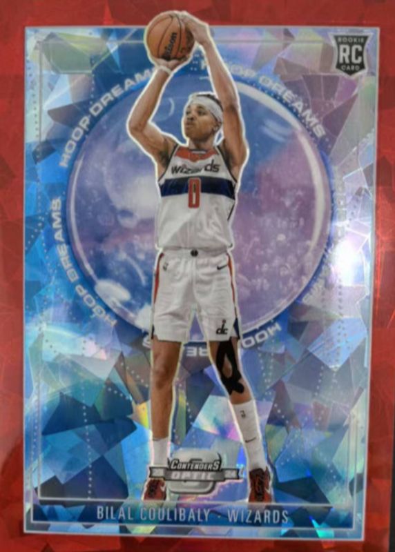The Bilal Coulibaly 2023 Contenders Optic #21 Hoop Dreams - Red Cracked Ice /175 Rookie card in Raw condition has moved up $0.50 (+6.7%) in the last 30 days and was last sold for $8.00 .