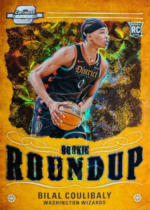 The Bilal Coulibaly 2023 Contenders Optic #8 Rookie Roundup - International Black & White /25 card in Raw condition has not changed in price in the last 30 days and was last sold for $9.50 .