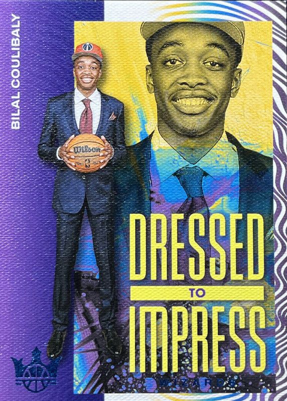 The Bilal Coulibaly 2023 Court Kings #10 Dressed to Impress - Amethyst /99 Rookie card in Raw condition has not changed in price in the last 30 days and was last sold for $6.02 .