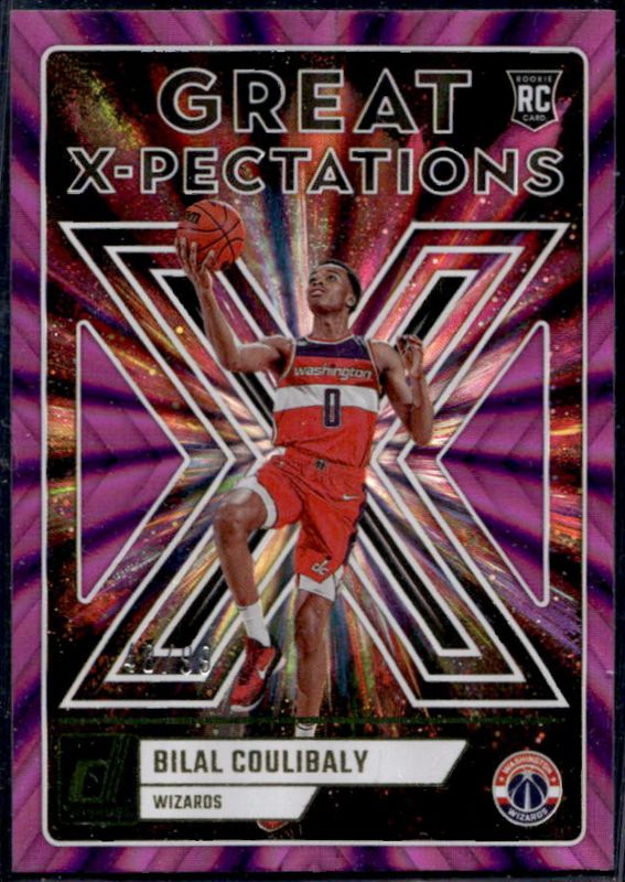 The Bilal Coulibaly 2023 Donruss #16 Great X-Pectations - Holo Purple Laser /99 Rookie card is 1 of 86 Bilal Coulibaly's card variations in the 2023 Donruss set being tracked by Sports Card Investor, including Base, Choice, Holo Green Laser, Holo Red & Gold Laser, and Press Proof Silver.