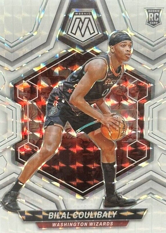 This card is 1 of 129 Bilal Coulibaly's card variations in the 2023 Mosaic set being tracked by Sports Card Investor, including Base, NBA Debut, Fast Break, Green, and Green Ice.