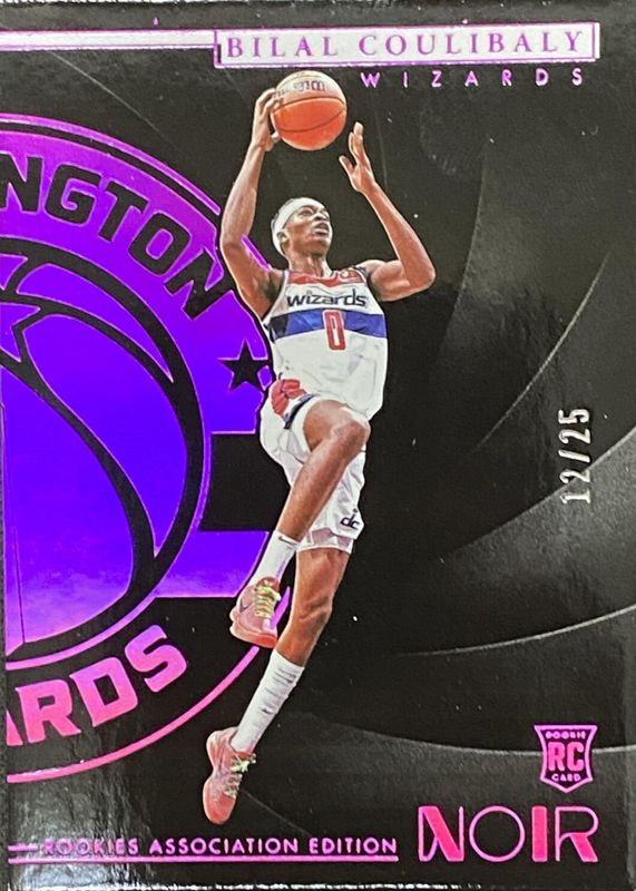 This card is 1 of 21 Bilal Coulibaly's card variations in the 2023 Noir set being tracked by Sports Card Investor, including Rookies Association Edition /99, Rookies Icon Edition /99, Rookies Metal Frame City Edition /25, Rookies Association Edition - Holo Silver /49, and Rookies Icon Edition - Holo Silver /49.