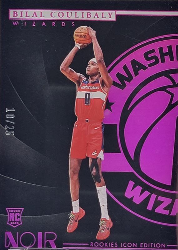 This card is 1 of 21 Bilal Coulibaly's card variations in the 2023 Noir set being tracked by Sports Card Investor, including Rookies Association Edition /99, Rookies Icon Edition /99, Rookies Metal Frame City Edition /25, Rookies Association Edition - Holo Silver /49, and Rookies Icon Edition - Holo Silver /49.