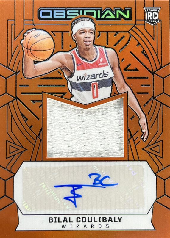 The Bilal Coulibaly 2023 Obsidian #215 Rookie Jersey Autographs - Electric Etch Orange Flood /75 card in Raw condition has not changed in price in the last 30 days and was last sold for $30.00 .