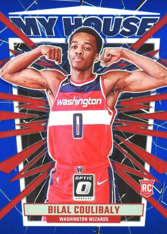 The Bilal Coulibaly 2023 Optic #16 My House - Blue /85 Rookie card in Raw condition has not changed in price in the last 30 days and was last sold for $0.99 .