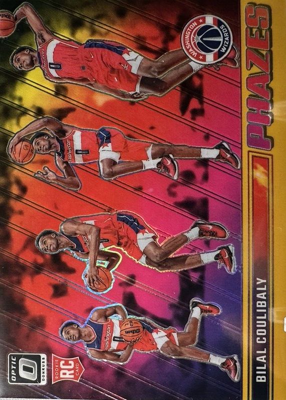 The Bilal Coulibaly 2023 Optic #11 Phazes - Gold /10 Rookie card in Raw condition has not changed in price in the last 30 days and was last sold for $102.50 .
